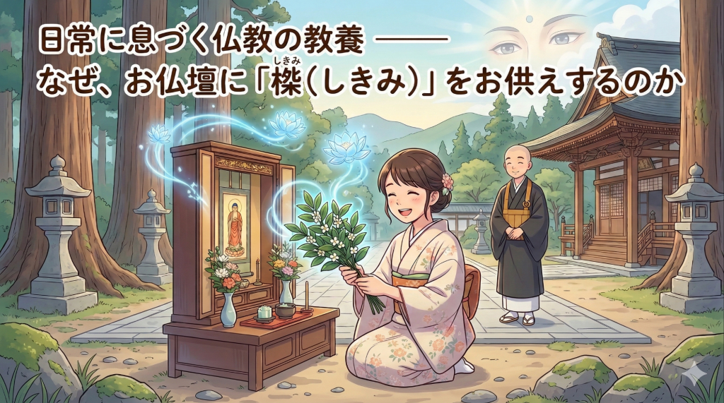 そこには、単なるしきたりではなく、私たちの心をすっと穏やかにしてくれる、仏教の美しい「智慧(ちえ)」が隠されています。 実はこの青々とした葉には、仏さまがたいへんお喜びになる“ある秘密”が込められているのです。